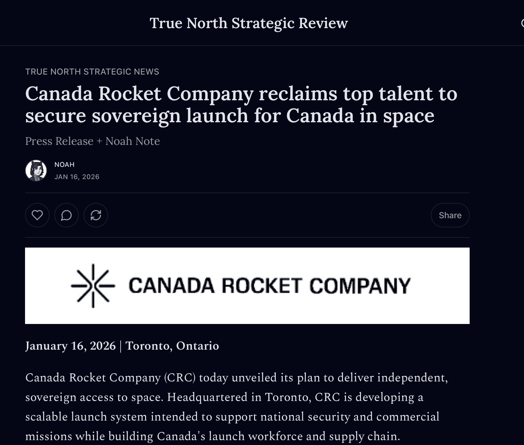 With a combined 60 years of global flight heritage, we're bringing talent back to Canada to bring a leaner and faster path to Canadian orbital access.